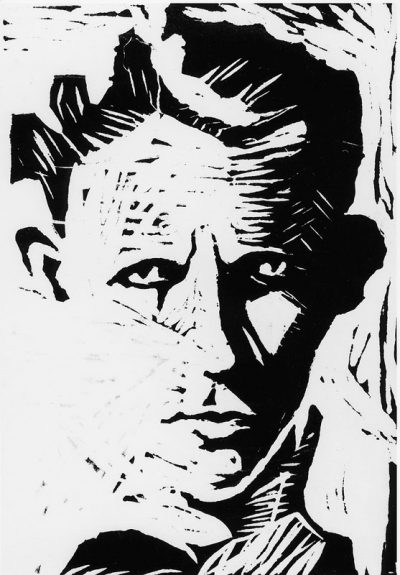 1937 Autoportrait, gravure sur linoléum par le compositeur